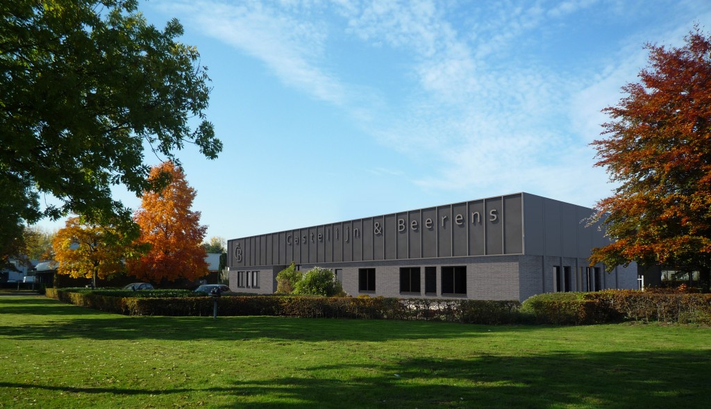 Het bedrijfsgebouw van Castelijn & Beerens heeft een prominente locatie langs rijksweg A59. Voor het bedrijf in luxe lederwaren hebben we een restyling van het bedrijfsgebouw ontworpen. De naar de rijksweg gekeerde gevel hebben we optisch een groter voorkomen gegeven. Deze nieuwe gevel doet tevens dienst als zonwering voor de nieuwe entree in de zuid-georiënteerde gevel. Het ontwerp is een vertaling van de kernwaarden van de producten en materialen die het bedrijf produceert in de uitstraling van het gebouw. Er is uitsluitend gewerkt met ruwe materialen die alleen een subtiele veredeling hebben ondergaan. Zowel het champagnekleurig geanodiseerde aluminium raster en de licht gestaalde betonpanelen combineren de ruwheid van metaal en beton met de verfijnde glans van het anodiseren en stralen: chic maar ook robuust.