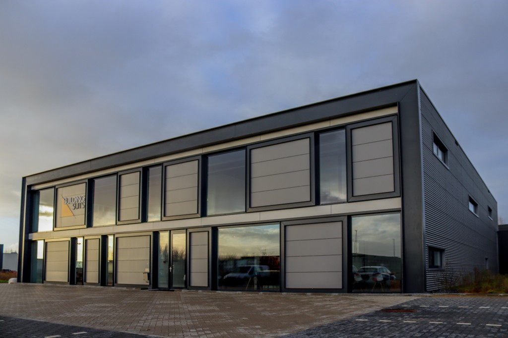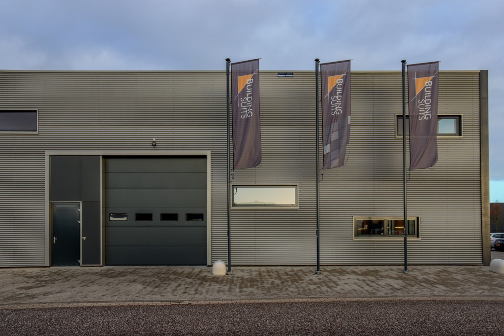Het ontwerp voor Building Suits is een bedrijfsgebouw waarin de voorgevel dienst doet als showroom voor de materialen die Building Suits verhandeld. De gevel openingen en tussenliggende dichte gevelvlakken zijn geplaatst in kaders zodat de individuele panelen door de tijd uitwisselbaar zijn.
