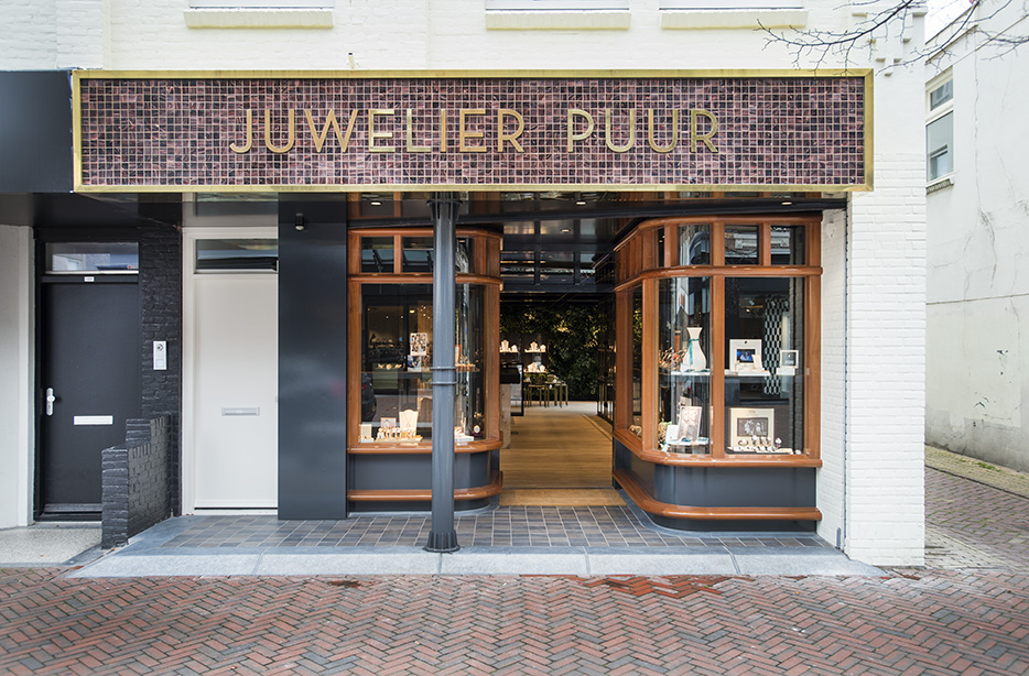 Voor Juwelier Puur in Waalwijk ontwierpen we in samenwerking met Pascal Beersma de gehele verbouwing van interieur en exterieur. Gedurende de verbouwing verdubbelde het vloeroppervlak van de juwelierszaak en werd de gevel geheel in stijl van het nieuwe interieur gebracht. Omdat sluiting van de winkel geen optie was is de gehele verbouwing gefaseerd uitgevoerd met een totale doorlooptijd van slechts 5 weken.